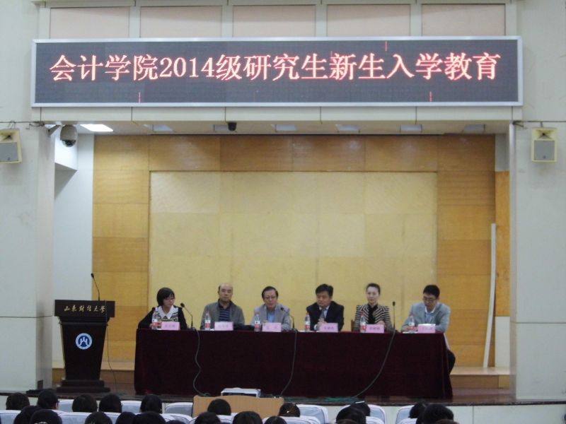 党总支书记张涛、常务副院长朱德胜、党总支副书记崔东峰,硕士研究生导师代表杨明增教授、教学秘书邢楠楠老师、辅导员王佃冰老师以及全体2014级研究生参加了开学典礼。典礼由副书记崔东峰主持。