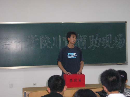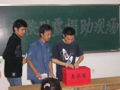 发言结束后,所有与会者走向募捐箱,为灾区人民献上了自己的一份爱心。整个过程安静而又庄重。在本次探花视频 学生自发组织的募捐活动中,探花视频 同学共为灾区人民捐款19943.2元,用实际行动表达了对川震灾区同胞们的关心。