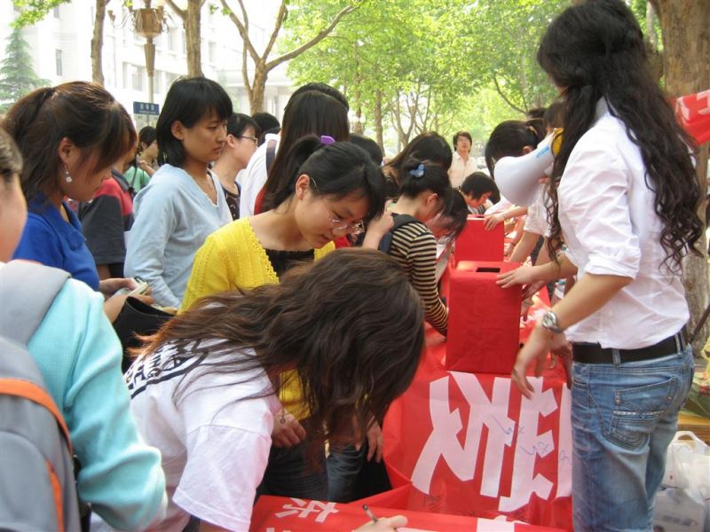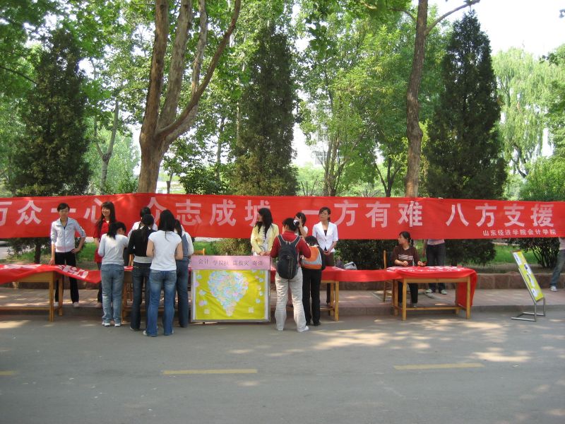 联合山东电视台公共频道新闻女生组在本部榕园举办了为灾区人民募捐的活动。探花视频