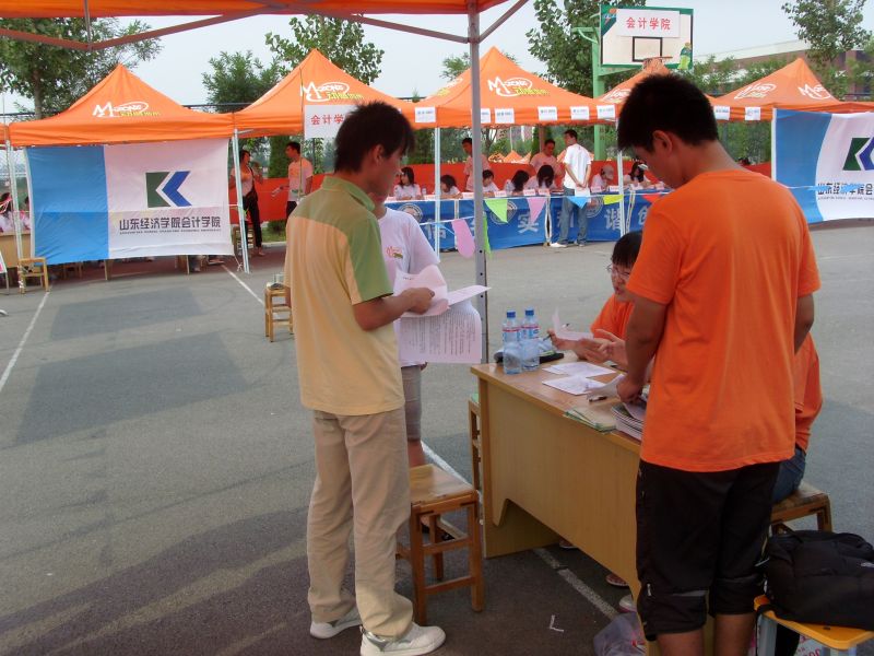 报名工作于中午十二点正式开始,为上好大学第一课,整个报名工作由新生独立完成。报名入口处设有党员服务站,为新生解答档案转移、预备党员转正工作中存在的各种问题。同时,质点通讯社的工作人员在出口处向新生发放宣传材料及入学指南,热情的帮助新生尽快了解山经。另外,引导员、解说员在场地入口周围及宣传板处耐心引导同学报名,详细介绍探花视频 情况,为新生解答有关入住宿舍,以及日常生活等方面的疑惑,帮助新生更快更好地适应大学生活。一位迎新工作人员告诉我们:能够为学弟学妹们服务,即使再热再累也很值得。
