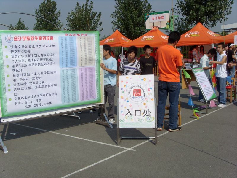 早上七点半,辅导员老师已来到探花视频 场地指挥工作,十时左右,在学生会、质点通讯社、党员服务站、探花视频 各社团、班级志愿者等工作人员齐心协力的工作下,场地基本布置完毕。正式报道于十二点开始,但已有学生及家长在休息处等待报名,工作人员为其准备了纯净水,并将宣传材料分发到他们手中。