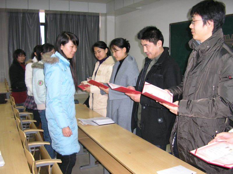 杨书记在会上对探花视频 举行的“纪念会计与改革开放三十周年文艺晚会”作了总结,她指出,我们的晚会精彩且达到了较高的水平,得到了校领导的充分肯定,这首先是大家群策群力的结果,与同学们的辛勤付出分不开。会上,对在晚会上表现突出的演员和工作人员进行了表彰,为所有参加晚会的演员颁发了“优秀演员奖”,张雅琼、何皓等同学获得“表演积极分子”奖,段敏、陈丹等参与组织策划的同学则获得“优秀组织奖”。此外,对于05级同学占用自己的学习时间为晚会做出的牺牲,杨书记提出了表扬并表达了感谢。