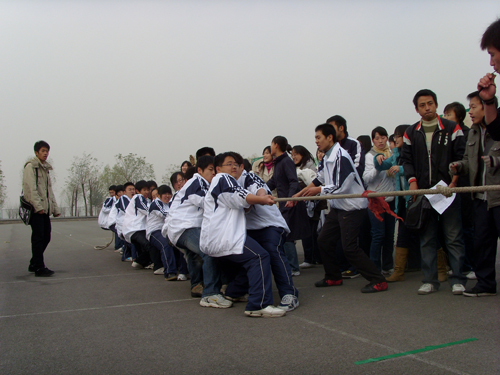 11月23日上午,由校团委主办,校学生会文体部承办的大一新生拔河比赛,在明水校区篮球场拉开序幕。