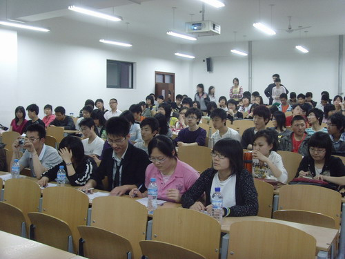 4月13日晚,诵林争霸赛复赛第一场在明水校区3202教室拉开帷幕。