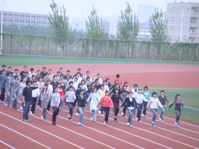 正积极地做着准备工作。每天下午5点40到6点半,在田径场西侧跑道上都能看到方阵队员们的身影。