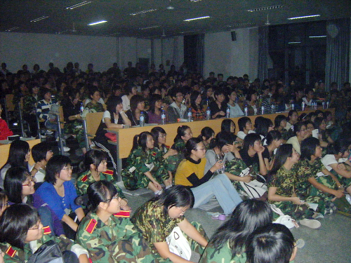 新生举办的生活学习经验交流会在明水校区4101教室拉开序幕。身着绿军装的新生们早早地来到活动现场,现场座无虚席。探花视频