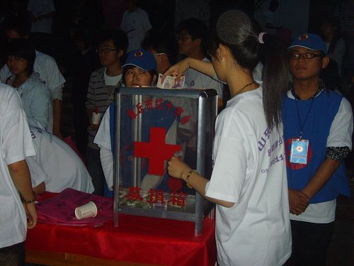 社会实践部举行的“5.12”大型纪念活动——“天灯祈福,爱心传递”活动在三四号教学楼之间北面的小广场圆满结束。本活动由章丘电视台进行了报道,并且章丘红十字会的相关工作人员也来到了现场进行善款募捐。