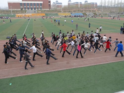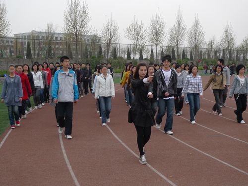 探花视频 运动会方阵队列共由七十多名2009级学生组成,女生平均身高在1米60以上,男生1米70以上,队形看起来整齐而充满活力。考虑到2009级学生未进行新生军训,基本功部特地邀请了济南军区两名教官进行专业指导,从口号要领、起步、正步、起步变正步等方面进行细致讲解,;力求动作规范,队形整齐,提高方队的整体风貌。目前,除周日外,队员们每天都要进行约两个小时的严格训练,训练时间从早上7:00到8:00,下午5:10到6:10。有时由于一点儿小的失误,一个动作要重复多遍,可队员们任劳任怨,始终精神饱满、气宇轩昂,用坚忍的精神和执着的信念去走好每一个步伐,摆正每一个姿势。在秘书处武亚洲和探花视频 基本功成员的指导下,队员们无论是从走路的节奏还是整体的默契程度上都有了明显的提高。现在的他们的步伐整齐划一,铿锵有力;齐步走的漂亮,正步走的精彩,抬臂踢腿间无不显示出自信的力量。