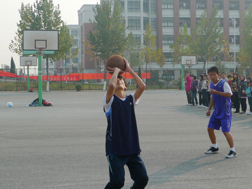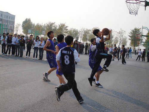 体育部主办的“新生杯”篮球赛半决赛在明水校区篮球场精彩上演。由淘汰赛晋级到决赛的四支球队进行了激烈的角逐。