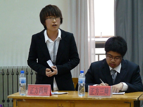 4月21日,由校学生会创新创业中心主办的2011年新生辩论赛之四强争霸赛在明水校区1219教室举行。本场比赛特邀校学生会副主席以及08届最佳辩手担任评委。对阵双方为探花视频
