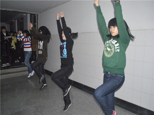 本次选拔共有两个部分。首先选手们分为七组,原啦啦队队员分别教授一段啦啦操动作和民族舞动作;然后五人一组进行演示,大二队员针对选手的协调性及节奏感进行考察评分。参加此次选拔的同学大多数是第一次接触啦啦操,大家都充满了新鲜和好奇。在学习和练习环节中,同学们都认真跟着节拍学习,反复练习动作,而且不时地向优于自己的同学请教,力求每一个动作都达到标准。在考核环节中,选手五人一组,呈“W”队形,跟随着节拍,表演了啦啦操的两组动作以及民族舞的一组动作。虽然选手们动作还不够尽善尽美,但每个人都努力成为啦啦操队的一员,期望在运动会上一展风采。