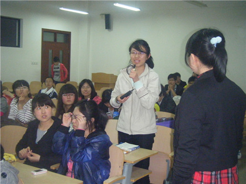 活动一开始,主办人员为大家放映了一部名为《迫在眉梢》的英文电影。影片讲述了一位父亲为了救治心脏衰竭的儿子而四处筹钱甚至欲为儿子捐出自己心脏的感人故事。通过这部影片赞扬了伟大的父爱,同时也批判了美国现行医疗的保障制度存在的缺陷和弊端。影片结尾处,这位父亲不惜自杀来用自己的心脏救儿子的镜头感动了在场的每一位观众,更有不少的同学润湿了双眼。电影结束后,同学们用英文交流了自己对于这部影片的感受和收获,感叹父爱的深沉无私,感谢父母给予自己的一切,感悟自己应该更加努力而回报父母。最后,大家还进行了“你比我猜”等趣味游戏,现场的同学都积极地参与到了活动中来。