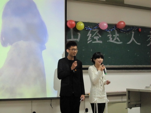 女生部与财政金融学院女生部联合主办的“山经达人秀”初赛在明水3217教室火爆开幕。经过前期的大力宣传,共有来自全校21名同学参加了本次活动。当晚比赛的评委由燕山小区探花视频