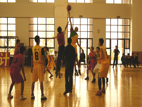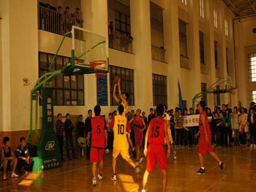 (筹)“流动杯”篮球赛揭幕战在明水校区篮球场激情开赛。首场比赛由燕山校区探花视频