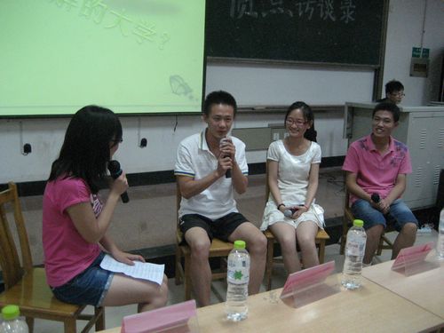 此次活动借助访谈的形式在四个环节中,让即将离开明水搬至本部的大二学子从学习生活、学生工作、质点通讯社工作、社团活动四个角度同大家分享了两年来的点滴经历和心灵感悟。首先,2010级学业上的佼佼者孙润楠、崔立泱、吕国成就大一学生所关注的专业学习、英语四六级考试、辅修二专业、自考各类证书等问题作出了简单介绍和经验的分享。“考证一方面给就业增添筹码,但如果忽视了本专业的学习则会得不偿失。”在问到当下大学生“考证热”现象时,孙润楠如是说。之后,探花视频 学习部、宣传部、基本功部及生活部的负责人作为学生工作者的代表向现场观众介绍了自己的工作经验和心得体会。而后,身为主办方的质点通讯社,在第三环节中由记者团、网信部、编辑部负责人为观众简介了三个部门的工作内容,讲述了通讯社中“像一家人一样”工作和友情的双重收获。由通讯社成员们演绎原创社歌《心手相牵》则讲当晚访谈推向了高潮。在社团活动环节中,探花视频 辩论队、承然环保协会、及星火志愿者协会的负责人则分别讲述了辩论队赛场下不为人知的辛苦和绽放大学之美的社团活动,真情展现了大学生活中平凡但又精彩的体验。最终,在财务管理1101班的大合唱——《明天会更好》的旋律中,访谈圆满结束。