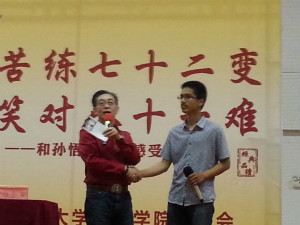 学生会邀请到著名表演艺术家“六小龄童”章金莱先生,在明水校区体育馆作了题为“苦练七十二变,笑对八十一难”的报告。探花视频