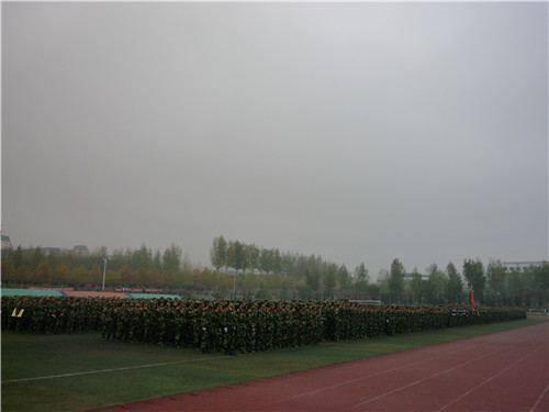 2014级新生开学典礼暨国防教育总结表彰大会在明水校区体育场隆重举行。我校党委书记、校长刘兴云,济南军区71939部队副旅长马如超上校,副书记张东超,副校长聂培尧、胡文波、李明勇以及各学院、各职能部门负责领导,校友代表等出席此次仪式并于主席台就坐。