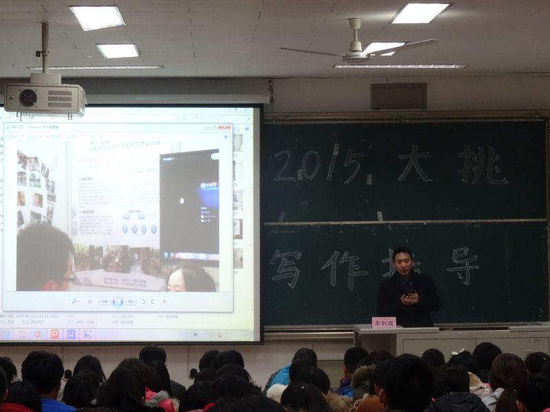 创新与实践中心主办的2015年“挑战杯”写作指导讲座在明水3217教室举行。本次讲座由法学院的牟利成老师担任主讲,探花视频