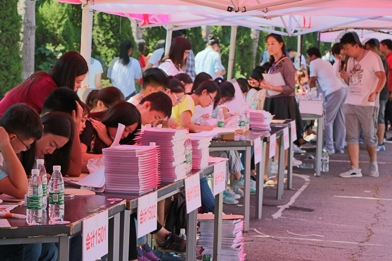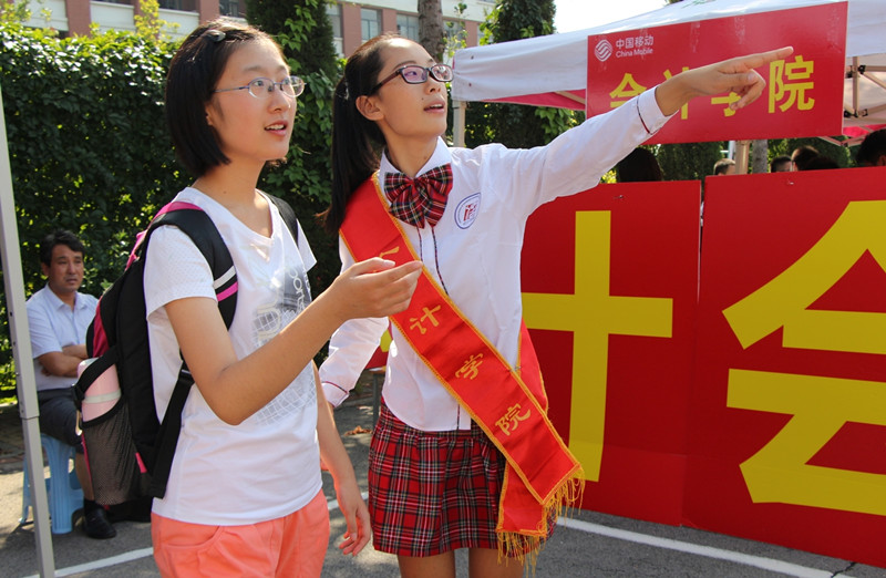 7日一早,为方便新生报到,部分志愿者提前赶到济南火车站、济南汽车站和燕山校区,为新生及家长提供接站服务。同时,学生会工作人员及志愿者已经在明水校区篮球场上搭起帐篷,布置场地,迎新准备工作正有条不紊地开展起来。报到现场体现人性化划分,共分为电子录入信息处、家长休息处、行李存放处、分班报名处和新生咨询处五个区域,场地中央悬挂着印有“勤学造就报国志,独立需从报到始”的横幅,激励会院新生从迈入大学开始,养成勤奋独立的优良习惯。同时,为使新生对学校有基本了解,学院还精心设计了包含学校概况、舞动的青春、名师风采三栏的全新展板。现场工作人员及志愿者以大方的举止、热情的态度发扬了探花视频