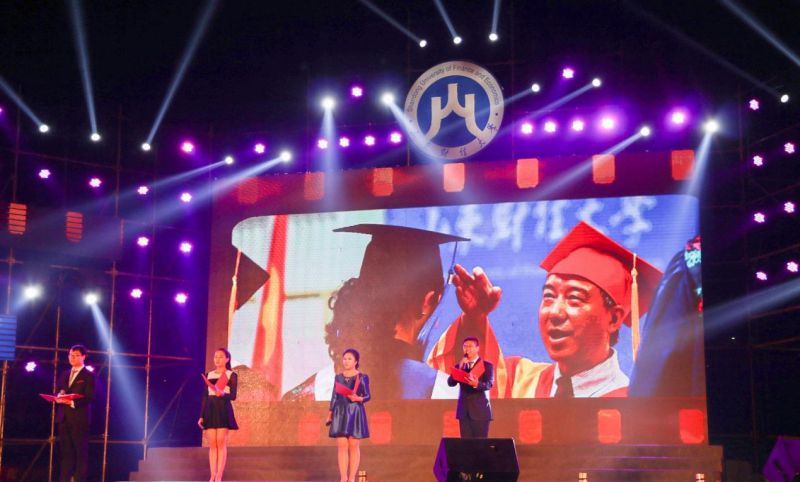 晚七点,伴随着财大主题纪录片的动人乐曲,本次晚会正式拉开帷幕。月色笼罩,天空中繁星闪烁,聚光灯下的舞台在操场上格外耀眼。现场同学挥舞着手中的荧光棒,激动而又期待,点点摇曳的光在诺大的操场上闪闪发亮。首先,十位青春少女为大家带来节目《鼓舞财大》,昂扬的鼓声阵阵,点燃了同学们的热情。接着,晚会进入第一幕“岱岳传儒风”。柔美典雅的舞蹈表演《望岳》和《爱莲》带观众进入诗情画意的古典意境,一首《老师我想你》,让观众沉醉于深情的演唱。随后,第二幕“故园抱新红”的表演,为观众展示了财大一路的风雨历程,激发了现场同学们心底的骄傲,赢得了阵阵掌声。在这之后,晚会第三幕“灼灼青未了”又为观众带来青春诙谐的表演:幽默搞笑但引人思考的校园剧、挥洒青春、张扬个性的模特走秀,将晚会推向了高潮。伴随着嘹亮军歌,第四幕《强学向未来》向现场观众走来,深入人心的诗朗诵《以青春的名义起誓》和优美动人的歌曲《追寻》,引领同学们走向知识的海洋、追逐绚烂的梦想。最后,晚会在全体演员的合唱《歌唱祖国》中圆满落幕。