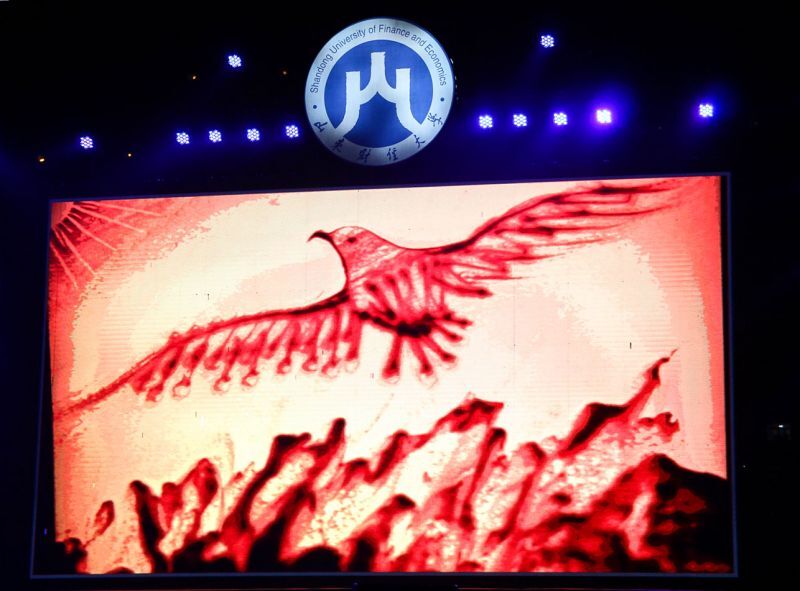 整个晚会精彩纷呈,高潮迭起,节目形式丰富,内容新颖。其中,探花视频 师生们在晚会中绽放出璀璨的艺术光彩。首先,探花视频 吕晓燕老师等四位师生,为晚会送上诗朗诵《财大,一路走来》。他们深情的诵读,慷慨激昂的语气,以广博天下的情怀为现场师生讲述财大一路走来的风雨艰辛和辉煌成绩,极大的激起了同学们对财大的自豪感。他们期待和新生“心连心,手挽手,共同托举起新财大喷薄的朝阳”。随后,探花视频 合唱团带来合唱节目《财大颂》,合唱团以恢弘的气势和强大的气场,将财大的风采和学子的精神面貌展现的淋漓尽致,也将晚会气氛推向高潮,合唱由探花视频 邢楠楠等四位师生领唱。随后,在“灼灼青未了”板块中,来自探花视频 宣传部的李雨阳等同学又为我们带来了精彩的沙画表演《飞得更高》,一幅幅精美绝伦的沙画呈现眼前,登山的勇士象征着勇攀高峰的学子,展翅的雄鹰预示着未来的财大定会飞的更高。精彩之后,来自财管1301班的杨宝睿同学为现场观众演唱歌曲《大学问》,用歌声将学习的意义和趣味娓娓道来,带新生感悟“知识跟世界细水长流,智慧用思考照明宇宙”的深意。晚会渐入尾声,探花视频 大二学生李英婕和大一新生于淼等人带来朗诵《我以青春的名义宣誓》,号召大学生作为未来的花朵,要“盛开在祖国最需要的地方”。
