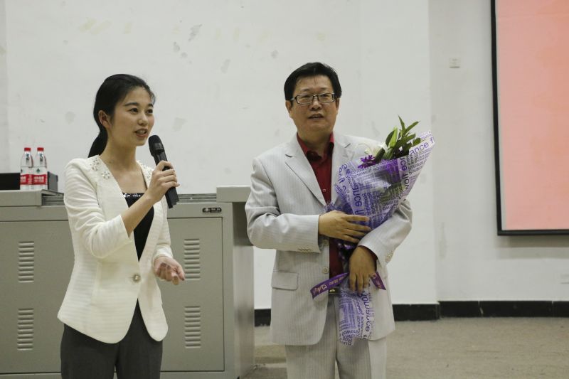 晚六点,讲座正式开始。李永刚教授以“态度决定一切”为主题展开演讲,旨在引导同学们树立正确的价值观和积极的人生态度。首先,李教授从价值观谈起,他认为价值观是一种信仰,是当下最重要的事。之后,他用生动有趣的故事结合自身丰富的人生经历旁征博引,和同学们探讨态度和能力的关系,让同学们深刻认识到“态度决定能力,我们有选择自己态度的自由”。当在演讲中谈及拼图时,他说到,“如果你做对了,或许这个世界也就对了”,以此劝勉同学们要自己拼搏奋斗,不要依靠背景。在演讲的过程中,满怀激情的李教授更是在现场为同学们带来军歌《小白杨》以及精彩的舞蹈,同学们被李教授的激情感染,积极与李教授互动,认真聆听教授的演讲,现场气氛积极活跃。最后,李教授从“学业、社团、交友”三方面建议同学们应怎样经营自己的大学生活,同时讲述了决定人生的几种心态,鼓励大家拥有渴望、激情、责任、自信、忠诚、顽强、共赢,坚持的美好心态。诙谐幽默的语言,生动深刻的故事,使得同学们共同沉浸在李教授精彩的演讲中。在李教授的演讲结束时,学生代表真情地献上花束,感谢老师的深切教诲与精彩分享。