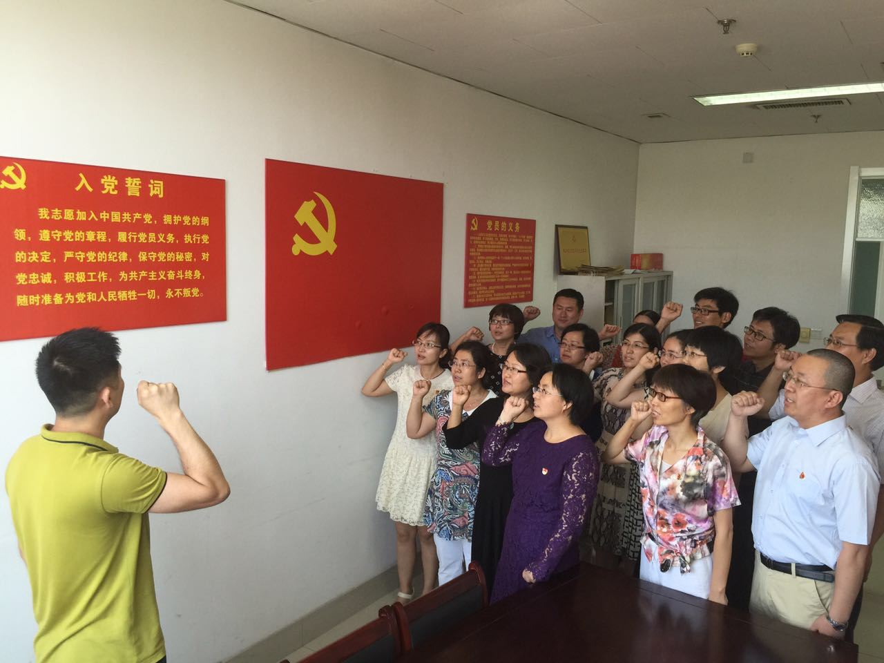 2016年6月29日,根据学校党委统一部署,为了纪念中国共产党成立95周年,探花视频 党委组织全体教工党支部在学院党员活动室举行了重温入党誓词活动。教工党员们胸前佩戴着党徽,在党旗下庄严宣誓:“我志愿加入中国共产党,拥护党的纲领,遵守党的章程……”。