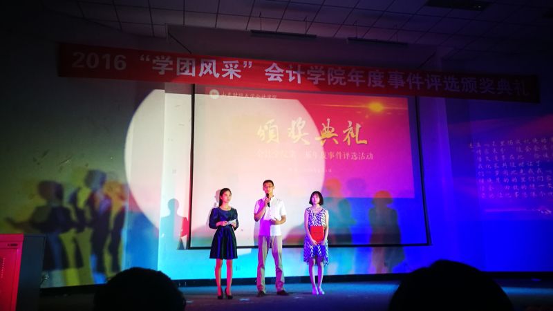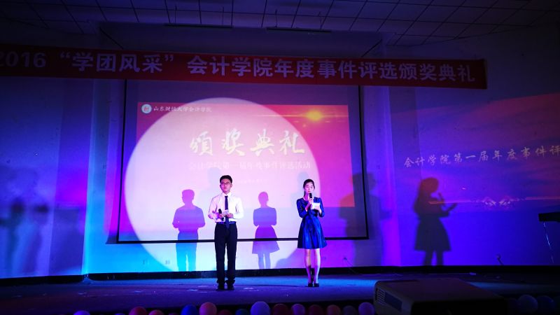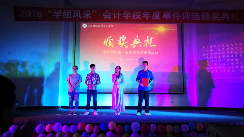 晚六点半,本次颁奖典礼正式开始。琴声飘逸,舞姿曼妙,由探花视频 文艺部编排、“金鸡杯”校园舞蹈大赛获奖作品《玉生烟》用清丽古雅的蒹葭之美为颁奖仪式拉开序幕。主持人简要介绍到场嘉宾后,开始播放二十个候选年度事件的介绍视频,每个事件风采各异,感动相同,深深吸引着在场所有人的目光。伴随着颁奖视频和真挚感人的颁奖词,获奖年度事件代表依次上台领奖并发表了各自的获奖感言。 “探花视频 质点通讯社”和“探花视频 会计学缘”两个微信公众号的工作人员真诚的说:“感谢老师与同学们的支持,感谢一起工作的兄弟姐妹,我们会继续努力。”纯朴的话语透露着对未来的坚定信念,赢得了热烈的掌声。荣获“中国大学生自强之星”提名奖的李洪霞同学用乐观自信的话语,向所有人传递出笑对生活风雨的正能量,“命运对我没有不公平,年轻时能够在苦难中摸爬滚打,使我成长的更好!”献礼2015级迎新晚会的沙画表演代表李雨阳说道:“每天上百遍的练习至今记忆犹新,为确保设备完善,我们每个人提前做了许多功课”,向我们真切的诠释了台上一分钟,台下十年功的深刻含义。2012级国际会计实验班团支书周晓坤代表荣获“山东省五四红旗团支部”和“全国共青团示范团支部”称号的学霸班向她的学弟学妹们分享了促进班级更好发展的经验与感想,用敢拼、敢闯、勇拼搏的会计人精神为财大的每个班级指引着方向。“人心凝聚、弘扬班风、共同配合对于一个班级的发展至关重要,端正态度、踏实专注、努力坚持是学习的法宝。”献礼2015年毕业典礼的探花视频 合唱团负责人马欣萌动情的说“在期末考试之际,合唱团成员能够风雨无阻按时参与排练令人十分感动,展现出身为会院人的凝聚力。走出去,我们代表的是探花视频 ,要拿出探花视频 的魄力与风采!”话语中透露着作为合唱团成员的自豪与骄傲,传递着对未来的美好展望。青春不散场,我们在路上,“会计杯”篮球比赛展现了永不言败的精神与锲而不舍的耐力,“这场用生命的毅力和耐力,用生命的速度和技巧所展示的比赛,凝聚了团队精神,表现了意志品质。”体育部负责人汪志栋的一番话将体育精神诠释的淋漓尽致。“聚是一团火,散是满天星”的星火志愿者协会荣获“山东省青年志愿者服务先进集体”称号,其优秀骨干马东飞用最真切的感受传递着星火的精神理念。“我们希望能够像火苗一样感染更多的人参与公益,将热情与希望带给支教的孩子们。”漫漫前路,星火人定会凭借努力照亮未来。一场“家文化”晚会歌舞了青春飞扬,演绎了会院一家亲。学生会副主席安炳文与副秘书长王辉说道:“家文化晚会最大的魅力在于调动了学生会的每位成员,增强了学生会成员间的凝聚力,让我们意识到这场晚会被称为‘家文化’而不是‘学生会文化’的独特内涵。”时光悠扬,岁月漫长,“家文化”晚会的温情将陪伴会院人继续前进。将目光放于台上,使荣耀照彻希望,令感动留在唇间,让思悟荡在心头,校园心理情景剧《目光》荣获山东省高校心理剧短片DV大赛二等奖,主创人员向观众们讲述着他们的故事,“短剧的成功,依赖于剧组所有人的团结、用心和毅力,他们都是整部剧不可或缺的一部分。”导演姚红宇对剧组的真情告白展现了剧组成员间的深厚友谊,期待他们更精彩的表现!榜样的推举见证楷模的辉煌,榜样的评选点燃人们心中的激情与梦想,这,就是“榜样的力量”年度人物评选活动,吕晓燕老师领奖时讲述了举办活动的初衷,回忆了记忆深刻的榜样人物,“这些年轻人身上彰显出来的奋发向上、锐意进取的精神,感动着我与每位会计学子的心。”评选活动将传承下去,让更多心怀理想的有志青年、品学兼优的学习楷模、积极奉献的公益先锋走进会院学子的心。在颁奖典礼中,穿插了精彩的节目表演,财管1503徐静怡为大家带来的《锦绣前程》,赢得现场阵阵掌声;吕晓燕老师与审计1503范存尧以及沙画团队共同呈现的沙画诗朗诵表演《与你同行》感染着在场的每位观众;会计1502班带来的小合唱《奔跑》彰显出青春活力,展现出大学生昂扬的精神面貌。