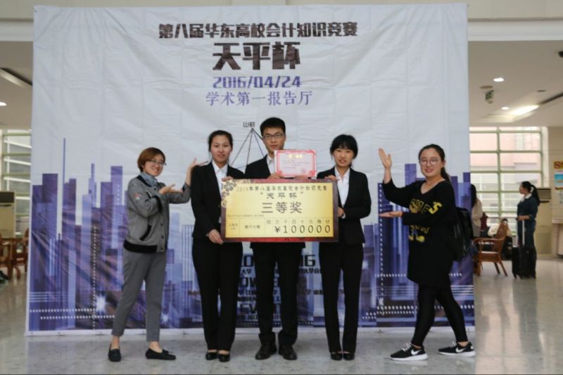 4月23日,在探花视频 学研部的带领下,在本次“天平杯”华东高校会计知识竞赛山财站初赛中脱颖而出的三名同学代表我校奔赴杭州,参加在浙江财经大学举办的决赛。4月24日下午1点整比赛准时开始,我校学生在现场答题过程中反应迅速,灵活又不失沉稳,不断赢得现场观众的称赞掌声。他们运用丰富的会计知识过关斩将,经过“先睹为会、会心满志、会人会语、精打细算”,“融会贯通”和“绝地出计”三个环节的层层角逐,在七所高校中脱颖而出,荣获三等奖,并获得奖金1000元。