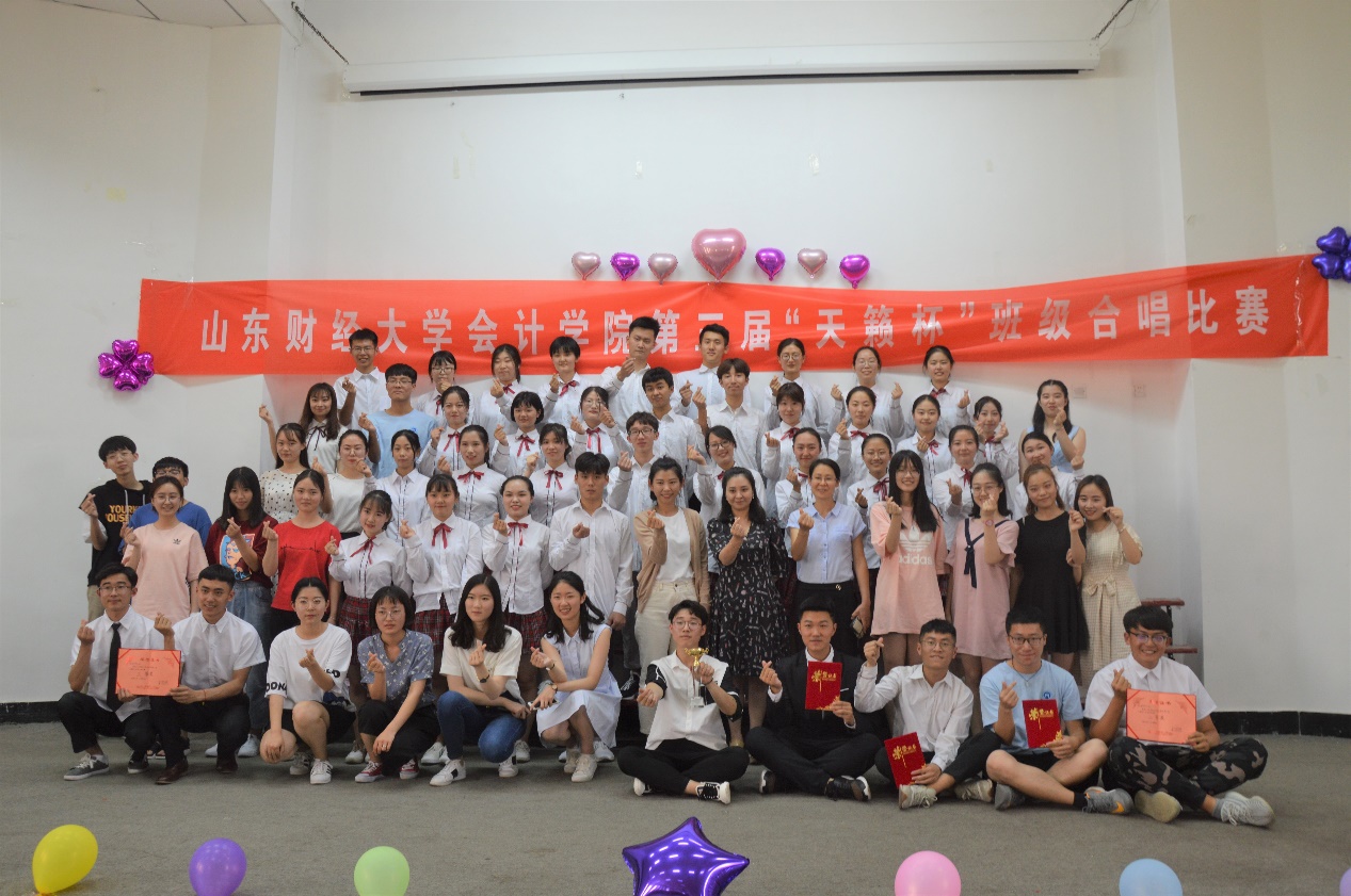 荣获二等奖的是资产评估1702班,第一名的桂冠由财管1704班夺得,由史岩老师为两个班级送上奖杯和证书。至此,第三届“天籁杯”班级合唱比赛圆满结束。