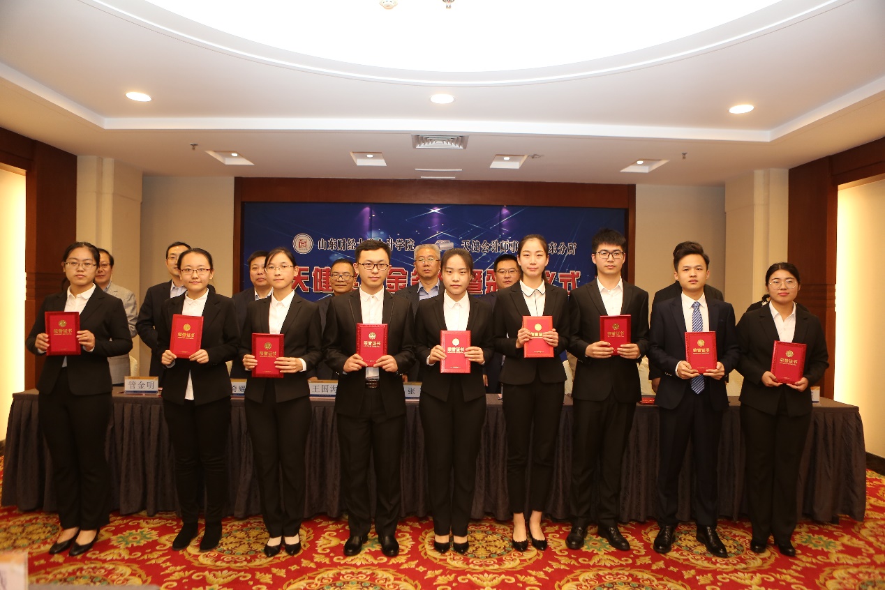 仪式上,由刘加宝先生、王爱国院长签订校企合作协议,由刘加宝先生及刘奇耀主任签订天健奖学金捐赠协议。天健会计师事务所合伙人管金明先生宣读获奖学生名单并颁奖。