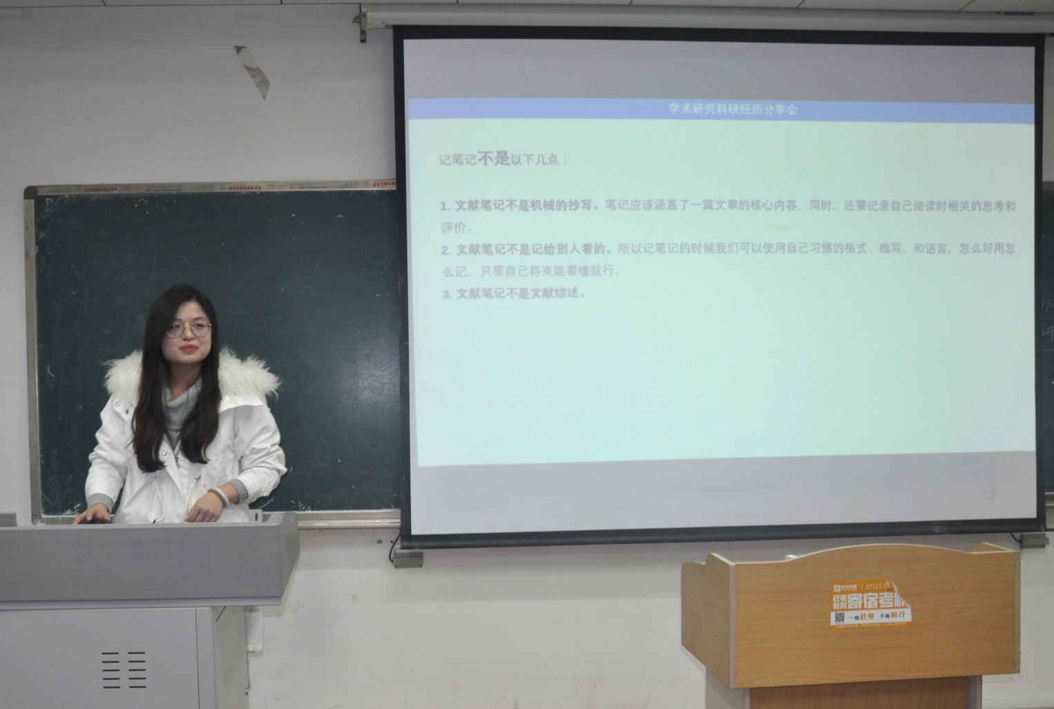 接下来,17级会计专硕宋艺对文献查阅技巧与方法进行了总结与分享。她认为,文献是研究的基础,是论文写作的材料,也是做好学术科研的第一步。同时,她为我们例举了一些查找文献的常用网站,比如:SCI-HUB、Library Genesis、谷歌学术、Citeseerx、中国知网等。然后,她详细为同学们介绍了笔记(文献整理)的方法及意义。她指出,记笔记主要有三大理由:弥补文献遗忘所导致的知识疏漏,指导如何去读文章,需要引用文献的时候可以信手拈来。与此同时,她认为无论是阅读规范类文章还是实证类文章,都应将一些重要的观点、结论、方法进行记录,并分析文章在研究设计上的不足之处和可能的改进方法。