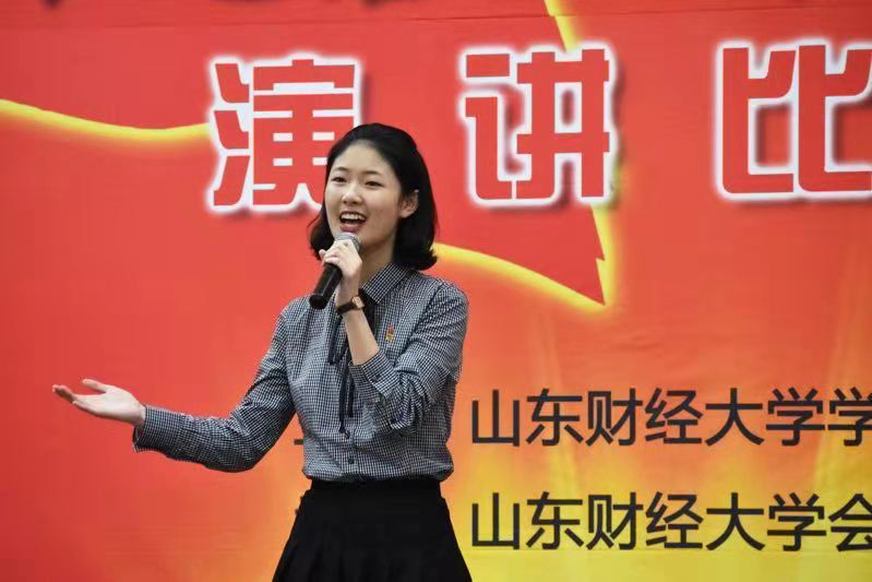 在比赛中段,由院合唱团带来的红歌串烧《不忘初心》为本次演讲比赛锦上添花,激扬的红色歌曲展现出青年人的生命活力、勇敢与担当。经过激烈角逐,本次比赛共评出三等奖10名,二等奖4名,一等奖由会计1603王荆花与财管1704褚政煊获得。
