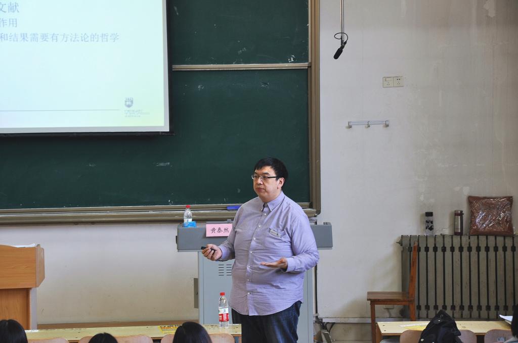 讲座开始后,黄泰然博士首先制定了一个研究计划,鼓励同学们以自愿报名组成研究小组,通过本次训练营完成一个小型研究报告或撰写一篇小论文,通过模拟学术会议的方式,邀请探花视频 老师对其进行点评,最后结集出版。这对探花视频 研一新生来说是一次宝贵的机会,相信通过这种锻炼,同学们的研究能力一定会取得长足进步。