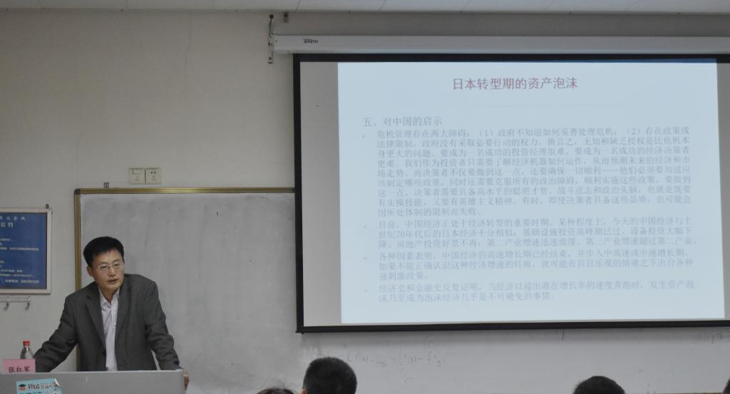 4月13日下午,国元证券股份有限公司投资银行总部总监、注册保荐代表人张红军应探花视频 邀请在燕山校区逸夫楼Y308教室作题为《跨境资本流动、资产/债务泡沫和金融危机》的专题报告。探花视频 副院长、MPAcc中心主任朱德胜出席并主持了报告,探花视频 部分老师和非全日硕士研究生聆听了本次讲座。