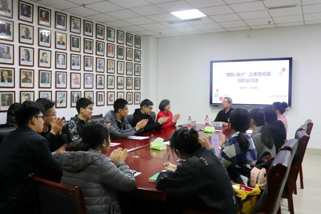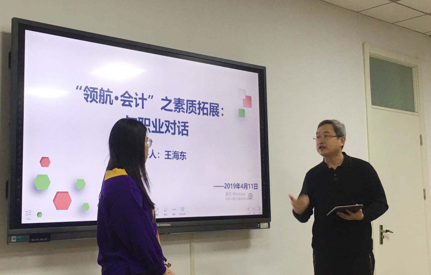 4月11日下午,我校优秀校友王海东应探花视频 邀请来到燕山校区,在逸夫楼309进行“领航•会计”交流会,探花视频 党委副书记付亚、辅导员张慧娟出席。交流会由付亚主持。