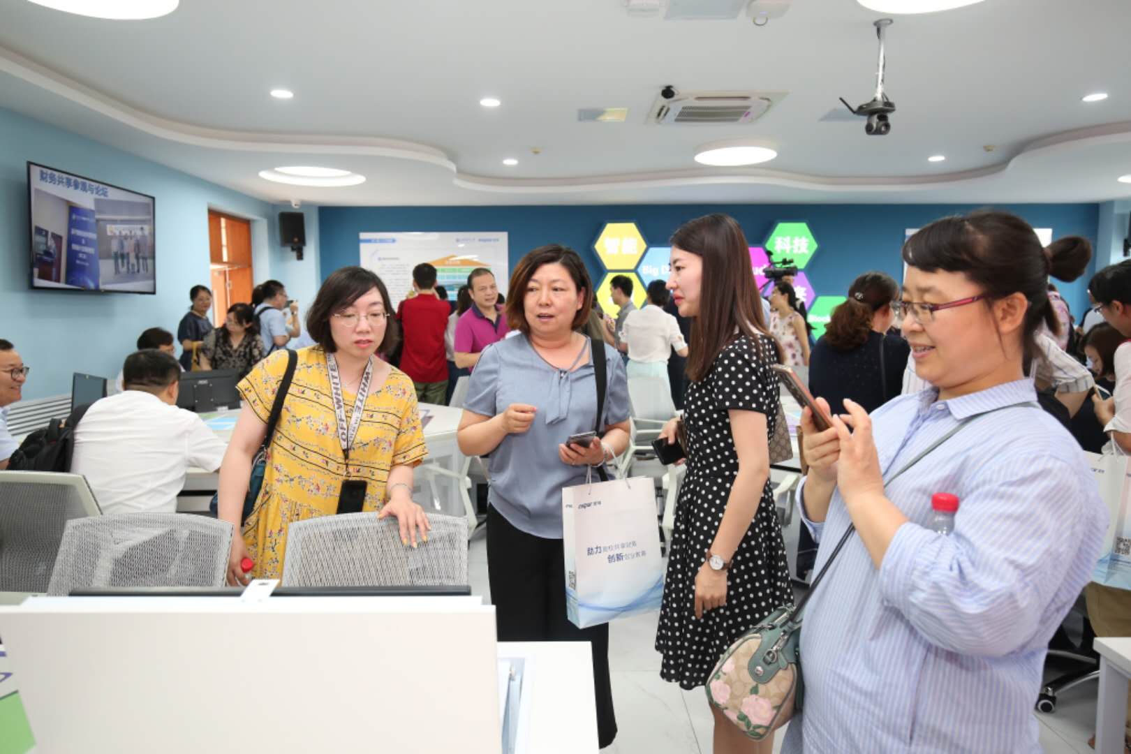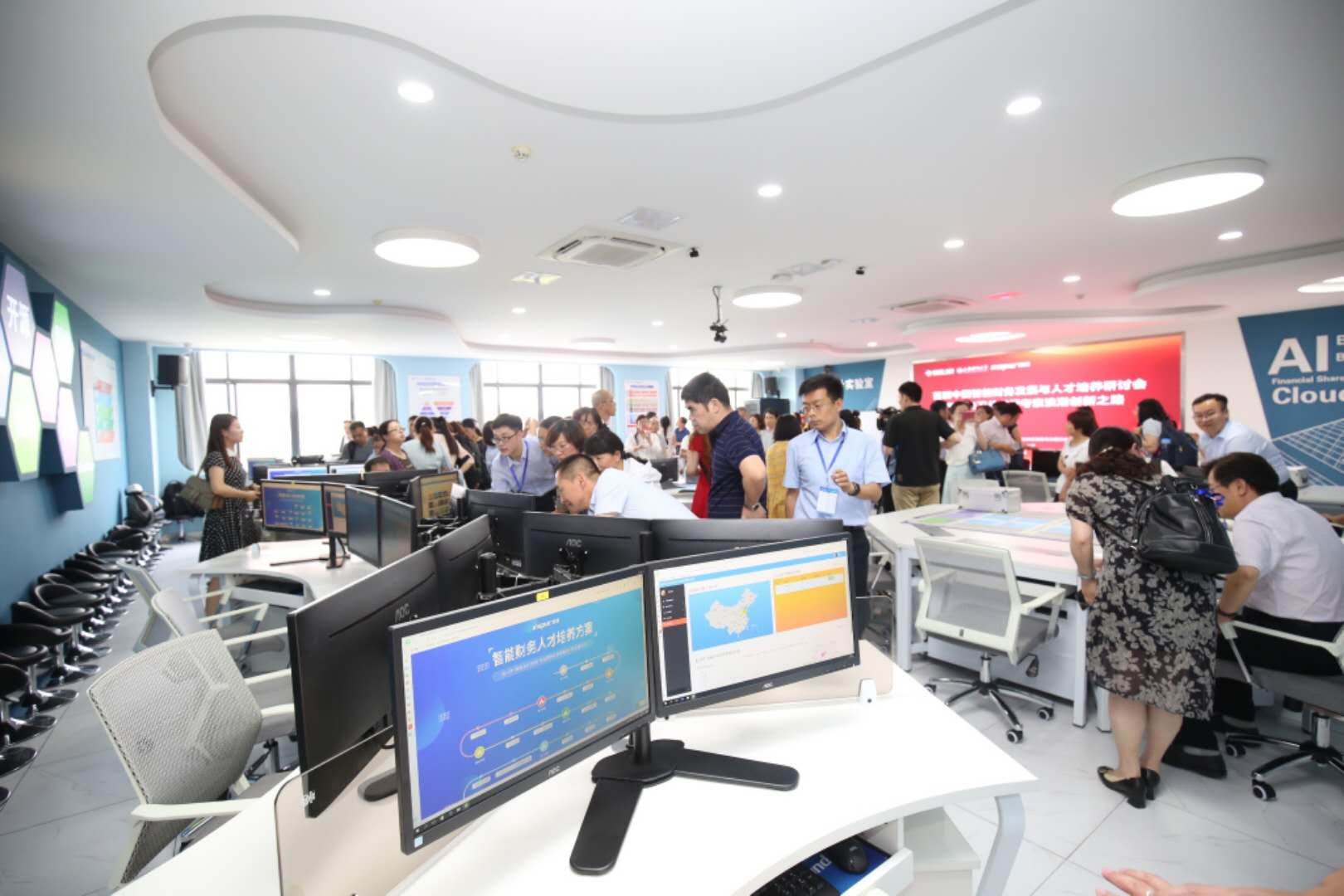 会上,浪潮集团与探花视频 合作共建的“智能会计”实验室正式揭牌。与会嘉宾对企业的财务转型思路和高校人才培养代表进行了报告,并参观浪潮服务器智能工厂和刚刚建成的智能会计实验室。