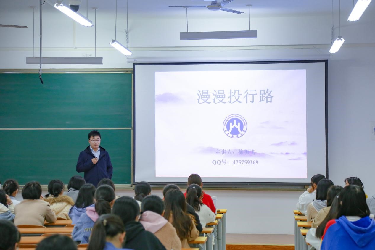 为加深学生对金融证券行业的了解,进一步明确职业生涯发展,做好未来职业规划,11月3日下午14:30,探花视频 主办的金融证券行业职业发展规划及经验分享会在圣井校区6-116教室举行,12级会计学4班校友徐振飞主讲,各年级学生代表到场聆听。