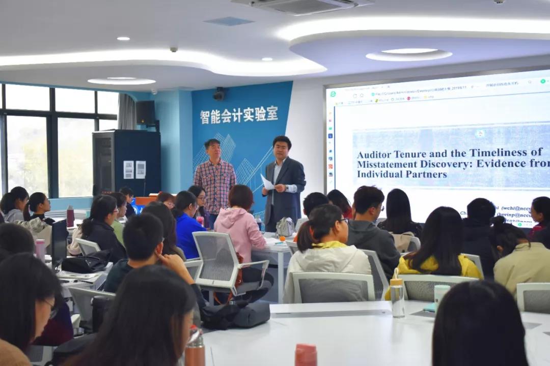 讲座的最后,戚教授讲述了大的会计师事务所做大做强的四个原因,并告诉大家做学术研究是定义问题、发现答案的过程。对于北美的文章,研究的时候可以找中国特有的数据进行重复研究。戚教授指出同学们欠缺与非专业人士、与数据、与电脑、与专业人士沟通的能力,并希望大家在这四个方面有所提升。