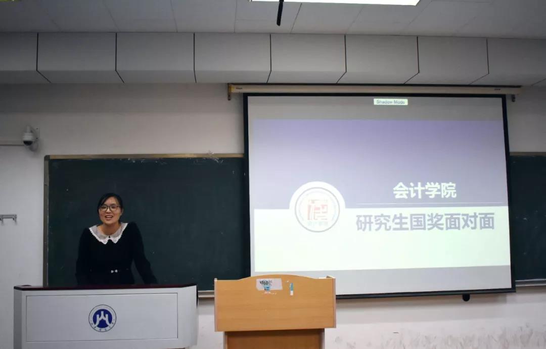 17级审计学硕王蕾用切身经历对研究生生活进行了总结。她认为,“沟通”很重要,多与导师和同学交流,取长补短;机会和兴趣也很重要,要把握机会,寻找自己的兴趣点并发挥兴趣优势。此外,她强调,要提前做好计划,适当放松自己,保证工作的高效完成。最后,王蕾将“寻找,鼓励,相信,坚持”八个字送给同学们,祝愿大家一切都好。