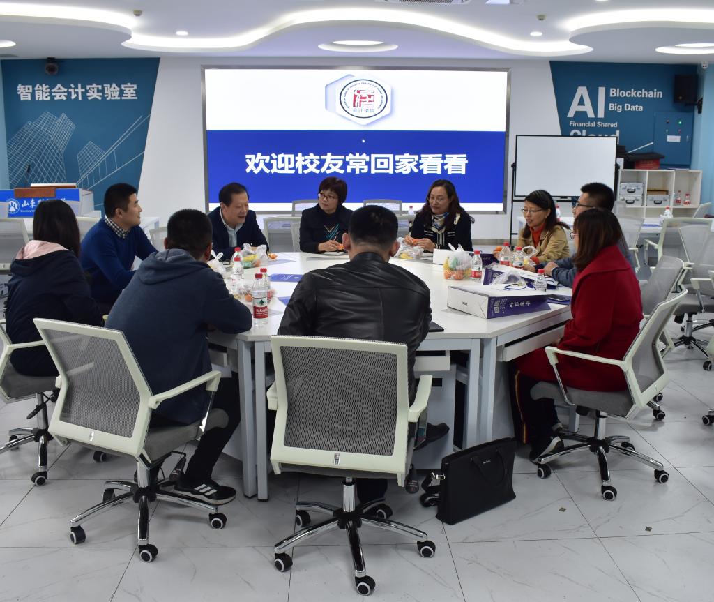 下午,校友返校交流座谈会在探花视频 智能会计实验室举行。探花视频 党委书记张涛、党委副书记崔东峰、探花视频 部分教师代表出席了座谈会。张涛书记对校友们返校表示热烈欢迎,他介绍了学院的发展现状,分享了近年来学院各方面取得的成就。与会校友们介绍了各自的基本情况,分享了他们在各自工作岗位取得的成绩以及下一步的职业发展规划。校友们感叹学院的发展变化,与老师们在专业发展、工作感受、合作交流等方面进行了热烈的讨论。
