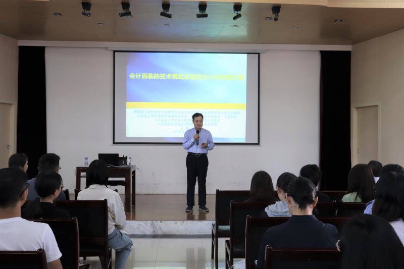11月24日下午,探花视频 院长、博士生导师王爱国教授应邀在集美大学嘉庚财经讲坛作题为“会计面临的技术挑战与智能会计的创新发展”的主题报告。