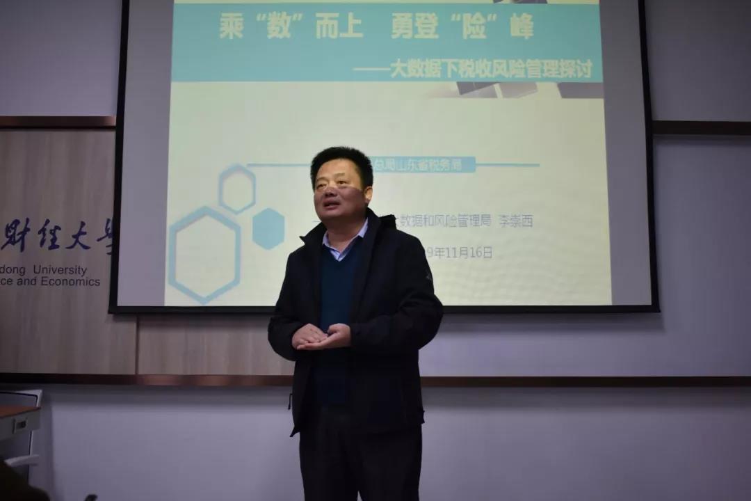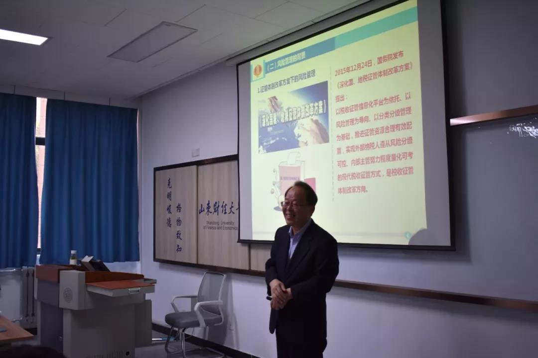 11月16日下午,李崇西教授应探花视频 邀请,在逸夫楼Y307作题为《乘“数”而上,勇登“险”峰——大数据下的税收风险管理》的学术报告。讲座由MPAcc中心主任、探花视频 副院长朱德胜主持,探花视频 部分老师及硕士研究生到场聆听。