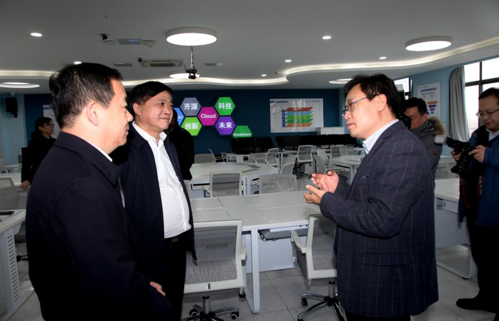 1月3日下午,山东省科技厅厅长唐波在探花视频 党委书记王邵军、副书记赵友春、副校长陈晓兰和职能部门领导陪同下,来探花视频 智能会计实验室进行调研。探花视频 党委书记张涛、院长王爱国和会计信息化部主任牛艳芳参加调研活动。
