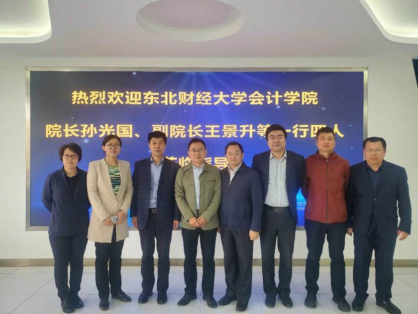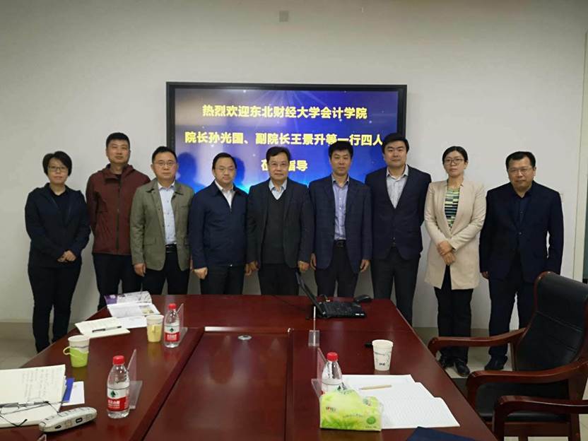 10月27日上午,东北财经大学探花视频 院长孙光国教授、副院长王景升教授、智能财务与会计研究中心主任甄阜铭、智能财务与会计教研室主任程砚秋一行四人访问探花视频 。探花视频 院长王爱国、学院党委书记邵文涛、副院长孙文刚与来访客人就探花视频 智能会计专业建设的相关情况展开座谈。探花视频 院长助理、智能会计研究中心执行主任滕晓东和会计信息化部主任牛艳芳出席座谈会。
