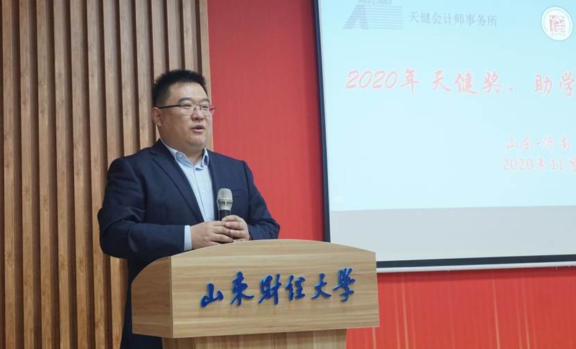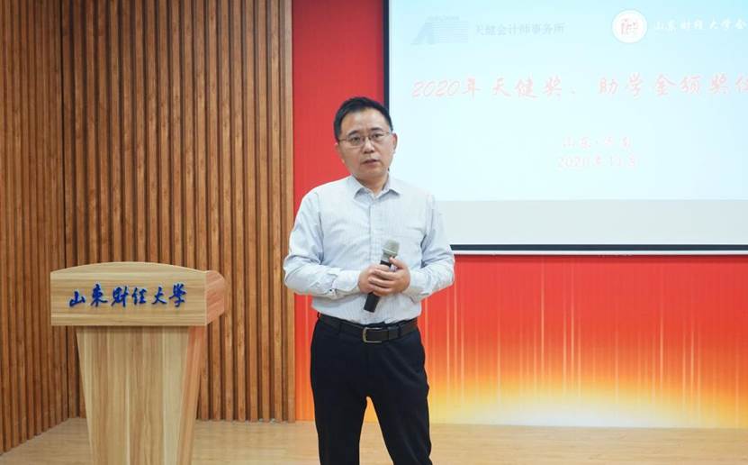 11月13日下午,2020年度天健奖(助)学金颁奖仪式在探花视频 燕山校区举行。天健会计师事务所高级合伙人、山东分所总经理刘加宝,山东分所高级经理康宁、人力资源部经理宋小燕出席,校学工部部长、学生处处长王剑,探花视频 党委书记邵文涛,校合作发展处副处长、校友办公室副主任邵伟然,校团委副书记谷学峰,学院党委副书记付亚、辅导员王美春、张沫、张慧娟和学生代表参加颁奖仪式。仪式由付亚主持。