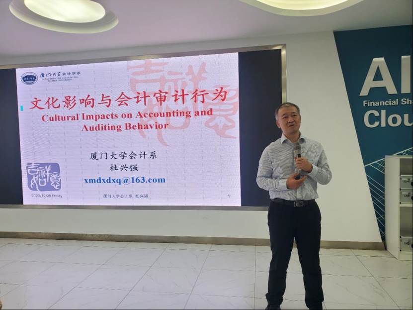 应王爱国院长邀请,杜兴强教授给探花视频 研究生和部分老师做了主题为“文化影响与会计审计行为”的精彩报告分享。