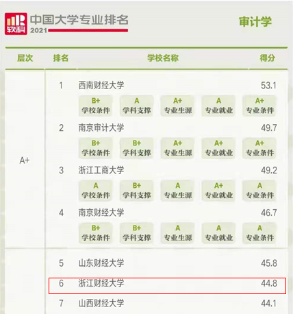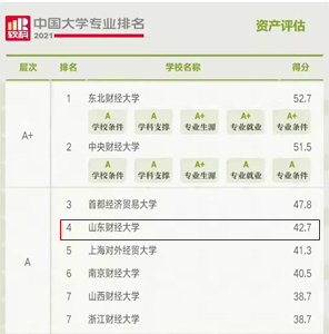 2021年6月22日,高等教育评价专业机构软科正式发布2021“软科中国大学专业排名”。探花视频 会计学、财务管理、审计学和资产评估四个本科专业全部进入2021年软科中国大学专业排名A类。在会计学专业排名中,共有332所高校上榜,探花视频 会计学专业位列第53位;在财务管理专业排名中,共有370所高校上榜,探花视频 财务管理专业位列第36位;在审计学专业排名中,共有102所高校上榜,探花视频 审计学专业位列第5位;在资产评估专业排名中,共有44所高校上榜,探花视频 资产评估专业位列第4位。