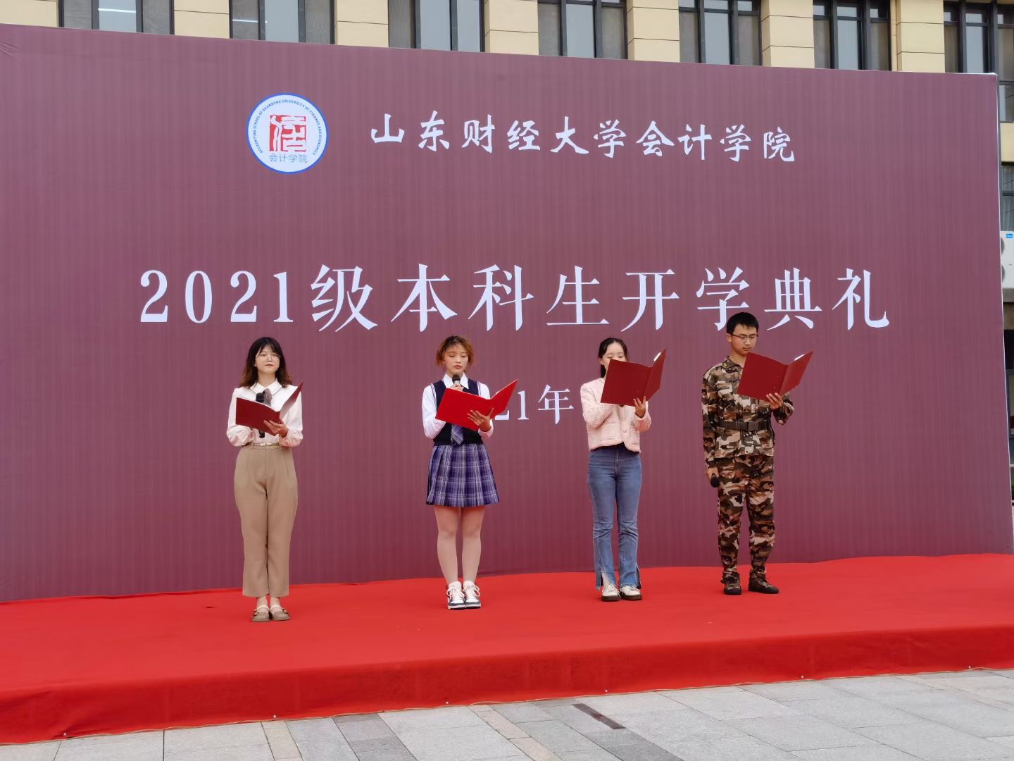 9月27日下午,探花视频 2021级本科生开学典礼在圣井校区隆重举行。探花视频 院长王爱国、党委书记邵文涛、党委副书记付亚、党委副书记钟毓卓、财务会计系主任王斌、团委书记于苗、就业办主任史岩、学工办主任赵鸿雁和2021级新生辅导员张沫、王美春、张慧娟出席,高年级学生代表和2021级全体本科生参加活动。