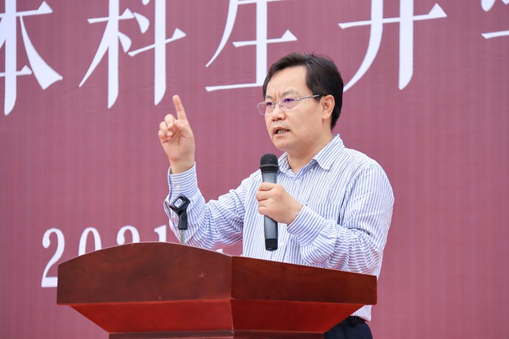 王爱国在典礼最后发表了亲切讲话,他与新生们一起回顾了探花视频 与山财大同辉煌的七十年历程,现有成绩的取得离不开每一位校友、老师与同学们的付出与努力,而新同学的到来又为学校和学院注入新的生机与活力。王院长指出,新时代会院学子要接稳历史的接力棒,肩负历史使命,坚定自信自强,努力成为堪当民族复兴重任的时代新人。他还与同学们分享了自己的求学经历,生动讲述了该如何规划大学四年的生活、如何规划人生的发展道路。最后,王院长勉励新生们当以精神之光照亮前行之路,在山财大收获健康的体魄、扎实的学业、深厚的友谊和优秀的品格,书写绚丽的青春华章。
